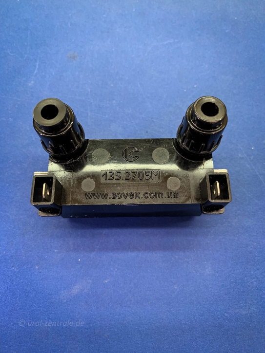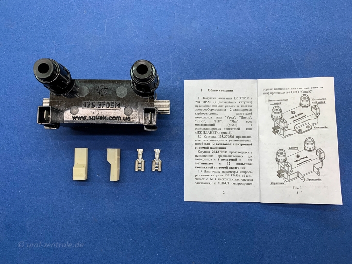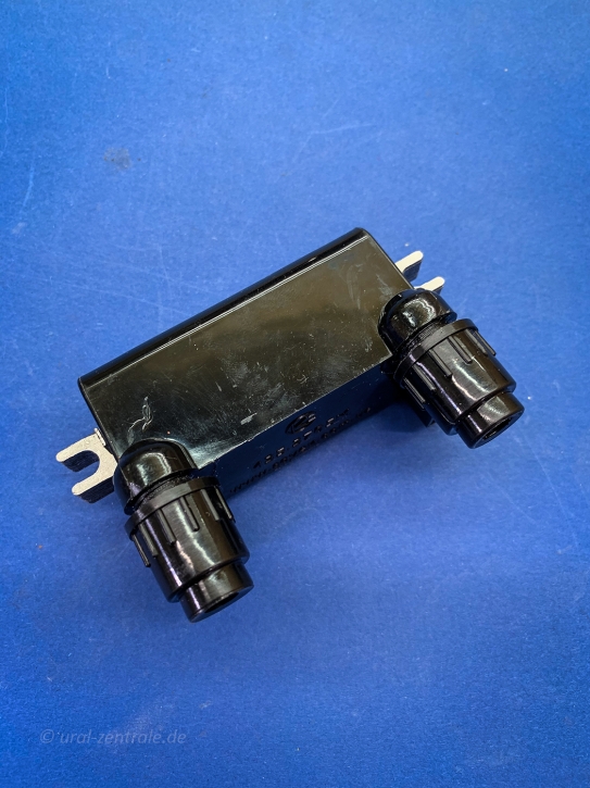 12V double ignition coil for contactless ignition for Ural and Dnepr motorcycles.