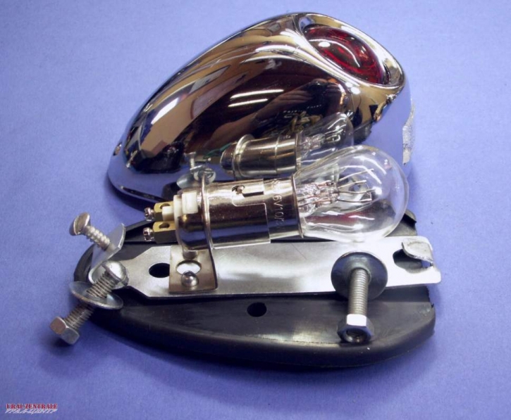 M72 Rücklicht verchromt, mit Bremslicht und Kennzeichenbeleuchtung
