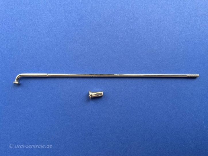 Spoke long for can cover hub Ural M72. Tapered to M4. 210 mm long. Chrome plated.