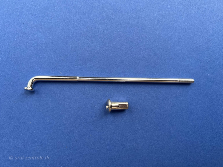 Spoke short for can cover hub Ural M72. Tapered to M4. 127 mm long. Chrome plated.